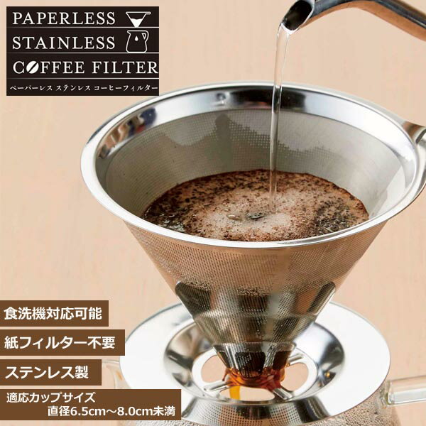 ペーパーフィルター不要、繰り返しドリップできステンレス製なので、丈夫でさびにくくなっております。※食洗器使用可能!※適応カップサイズ 直径6.5cm~8.0cm未満
