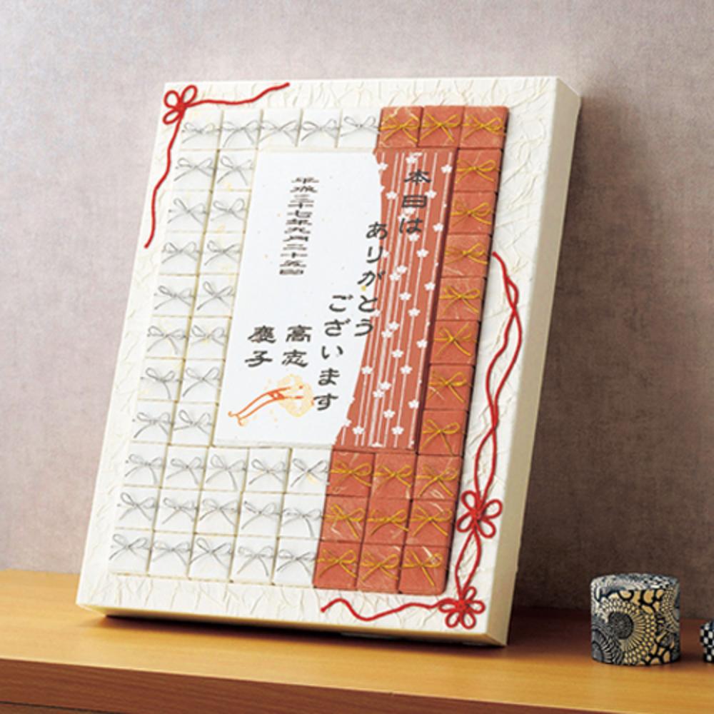 金糸入りの和紙で包んだ、高級感がただようプチギフトです。