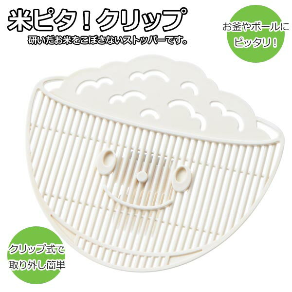 お釜やボールにクリップでピタ!研いだお米をこぼさないストッパーです。お米以外にも使い方いろいろ! 水にさらしたキャベツの千切りの水切りに。