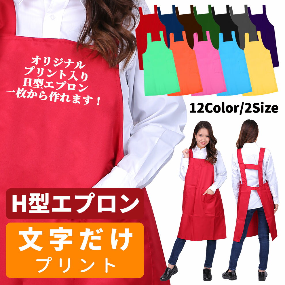 【スーパーSALE ポイント5倍】プリント入りエプロン 文字のみ H型 胸当てエプロン プリント入り オーダーエプロン 無地 シンプル 超撥水 店名 ロゴ 飲食業 業務用 麻雀 雀荘 保育士 サロン 料理教室 格安 ユニセックス 前掛け 全12色 【ラッピング資材同梱可】 メール便可2